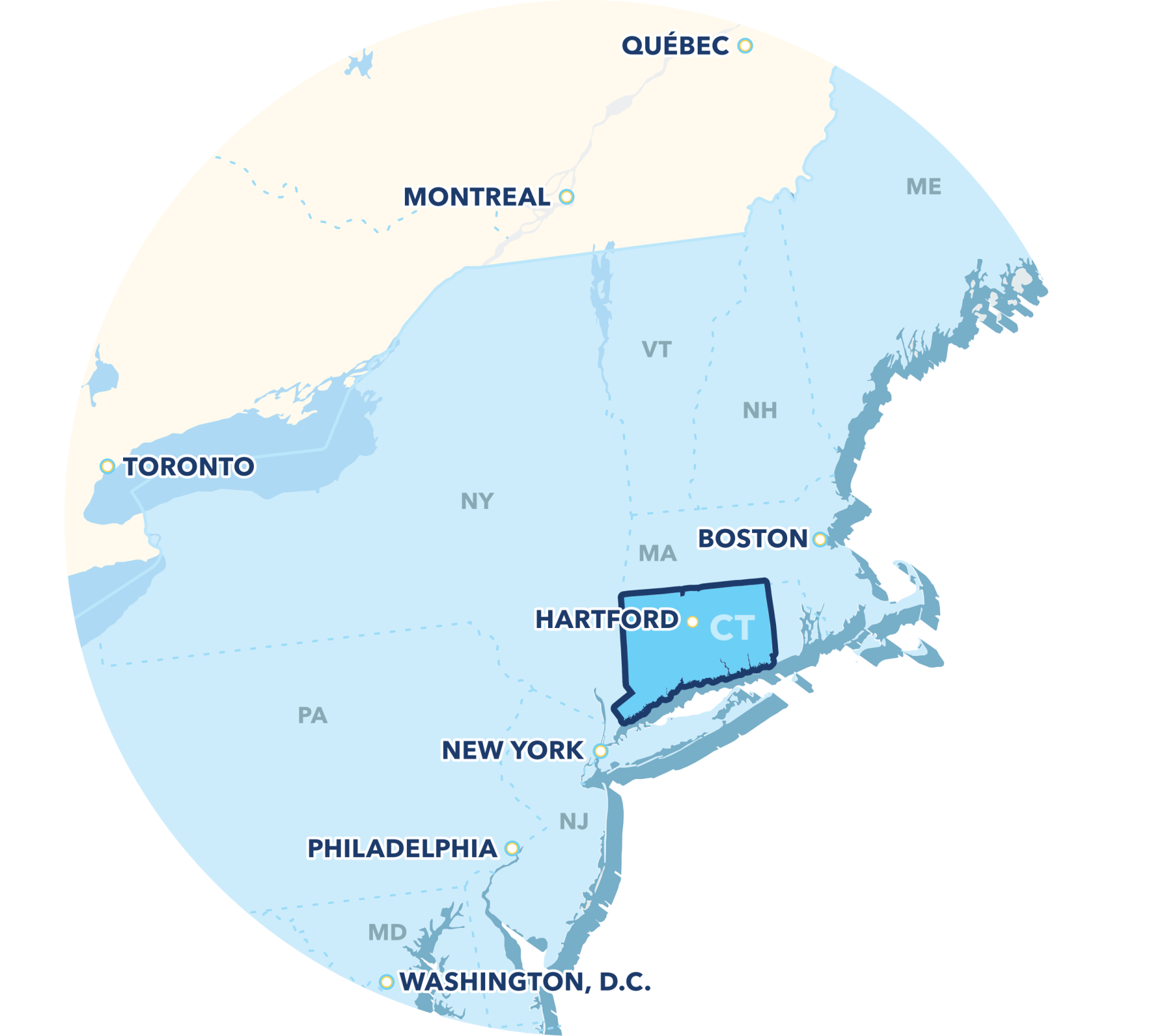 ![]() | Connecticut Offers Proximity & AccessPositioned in the epicenter of the Northeast U.S., Connecticut offers foreign-owned businesses an ideal location adjacent to New York, within two hours of Boston, and within 800 kilometers of nearly one-third of the U.S. economy1 and two-thirds of the Canadian economy2. Connecticut offers one of the nation’s most highly educated, highly productive workforces in the world. In fact, Connecticut's productivity is on par with world-leading nations — including Switzerland, Qatar, and Singapore, the 7th, 8th, and 9th most productive countries globally3 — and outpaces all G7 nations. Our compact geography allows for better accessibility to state and local government and industry associations. Coupled with a top-rated education and childcare systems and affordability compared to major cities and our Northeast neighbors, Connecticut makes the ideal place to live, work, and locate a business. Connecticut is home to more than 1,500 life sciences establishments1 that employ over 25,000 people2 in the state, contributing to Connecticut's status as the state with the 9th highest STEM employment concentration in the U.S.3 This STEM workforce is one of the most highly skilled and educated in the nation, with Connecticut's workers boasting the 7th highest percentage of science, engineering, & health doctorates in the workforce4 in the country. This talent has resulted in a wide array of innovative companies flocking to the state, like pharmaceutical giant Pfizer, who operates a key facility in Groton, CT, which focuses on research and development and the manufacturing of biopharmaceuticals. This site plays a pivotal role in advancing Pfizer's vaccine and drug development efforts, most notably the COVID-19 vaccine. The company is a significant employer in the state, with hundreds of employees dedicated to scientific innovation and improving global health outcomes.